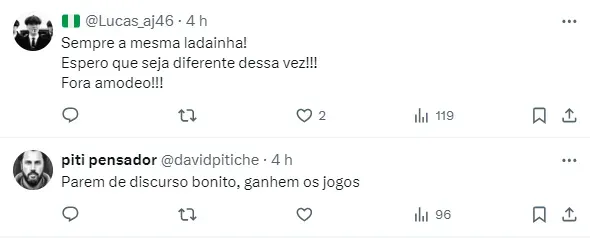 “Uma torcida apaixonada, vibrante, mas o principal é fazer o time fazer parte. É o que fizemos no Botafogo, trazer a torcida junto, viver, respirar esse momento. Temos que ter um respeito muito grande e levamos isso para os atletas colocarem isso no campo. Mas precisamos do torcedor junto“, afirmou Matias.
