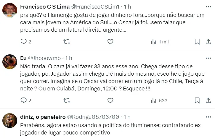 No futebol chinês, Oscar disputou 216 jogos, marcou 63 gols e deu 114 assistências. O meia tem grandes números e por isso vinha atraindo olhares de grandes clubes do país. Além de Flamengo e São Paulo, Corinthians e Internacional também observavam o jogador.