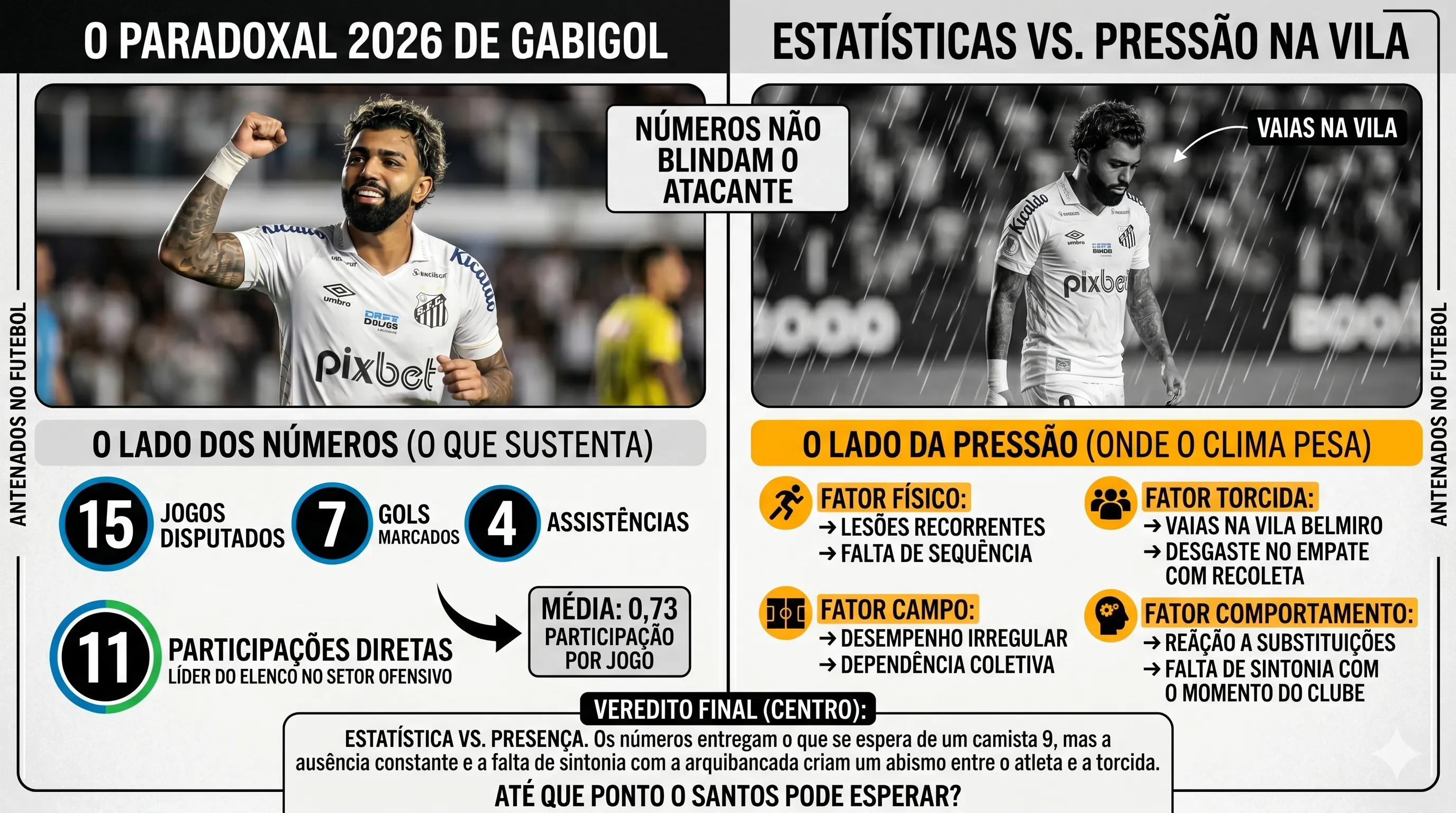 A situação do atacante escancara um ponto central do futebol atual: estatísticas isoladas já não sustentam protagonismo sem regularidade e conexão com o ambiente. No Santos, o problema não está apenas nos gols marcados, mas na incapacidade de transformar desempenho pontual em influência contínua dentro de campo.