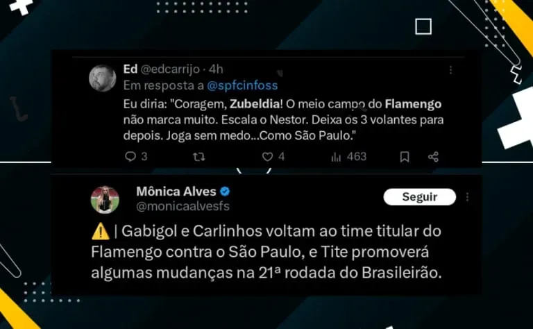 De olho no adversário, o Tricolor fica atento às escolhas de Tite para a partida. Segundo informado pela jornalista Mônica Alves, Gabigol e Carlinhos estarão entre os titulares.