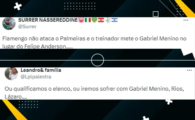 “Gabriel Menino não pode ser considerado para entrar em um jogo assim, sua entrada no lugar de Felipe Anderson prejudicou o nosso time”. “Ele não tem uma regularidade nos jogos, espero que faço o restante da temporada e depois suma do elenco”.