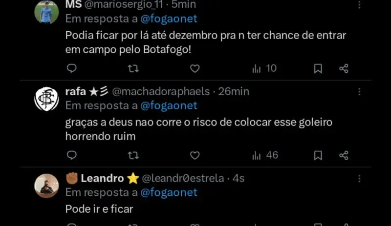 Na temporada atual, o goleiro tem 21 partidas pelo Alvinegro Carioca. A última foi justamente pela Libertadores, contra o Junior Barranquilla, pela última rodada da fase de grupos.