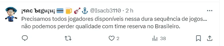 A expectativa é que ambos possam ser integrados ao elenco que viajará ao Chile para o decisivo duelo contra o Huachipato. No entanto, a presença dos jogadores na delegação será confirmada apenas após avaliações diárias de seu progresso. É improvável que sejam relacionados para a partida contra o Bragantino, no sábado, pelo Brasileirão.
