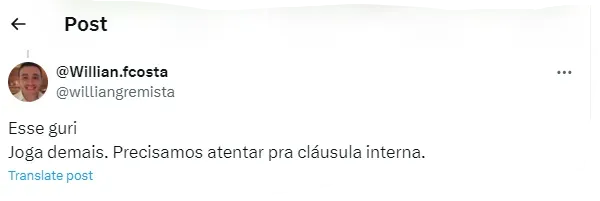 Sobre o tema citado acima, nas últimas horas, o Grêmio postou um comunicado informando que o jovem está definitivamente promovido ao time de Portaluppi. Vale frisar que ele já estava incorporado aos treinamentos no CT Luiz Carvalho e ao cronograma da comissão técnica.