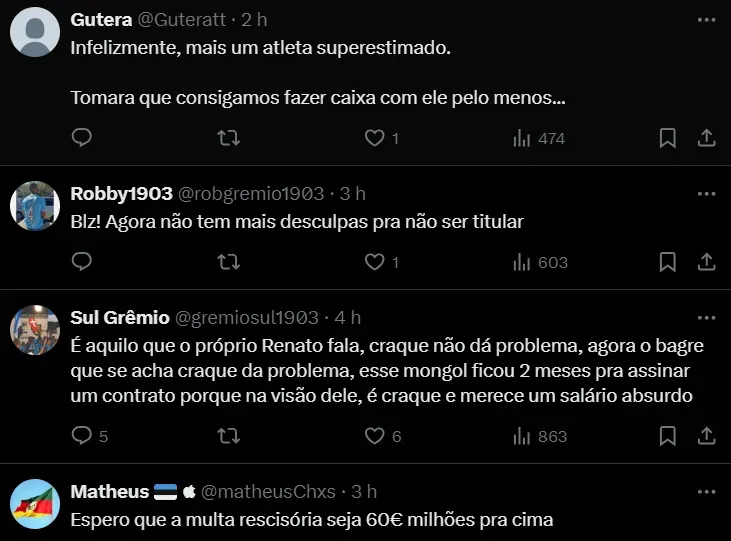 O antigo contrato com o jogador era até dezembro de 2025 e com o interesse europeu crescendo, o Grêmio partiu em busca de estender o acordo e aumentar a multa. A principal divergência entre as partes era os valores salarias e bônus, mas depois de algumas conversas chegaram a um denominador comum.