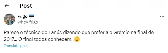Deixando um pouco de lado a fase de grupos e falando um pouco mais sobre a próxima fase da Liberta, nas últimas horas, uma declaração de um possível adversário da equipe gremista chegou aos ouvidos de Renato Portaluppi e cia.