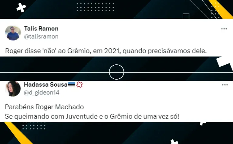 “Espero que o Roger não pense somente no dinheiro para largar o Juventude pensando em ir para o nosso rival do estado, com certeza manchará parte de sua história por aqui”. “Ele não pode ir para o nosso arquirrival, espero que a negociação mele”.