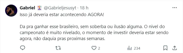 Dessa forma, cerca de dois a quatro jogadores chegariam no tricolor com o status de titular. A ideia seria levar o time para brigar pela terceira estrela ou uma vaga direta para a Libertadores de 2024.