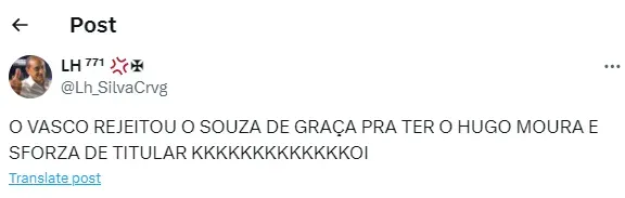 Isso porque, após o volante ‘atolar’ o time diante do Furacão, a torcida vascaína ficou revoltada contra a peça. Sendo assim, os seguintes comentários já estão bombando na web carioca (SIC). “Esse é bagre demais, não deveria ter sido contratado”.