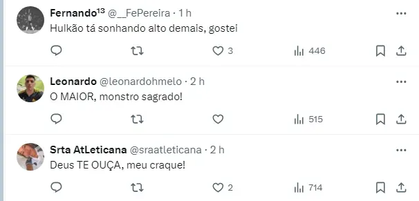 Neste período sem sacudir as redes, Hulk deu quatro assistências para os seus companheiros. Neste ínterim, o Galo teve cinco vitórias e três empates.