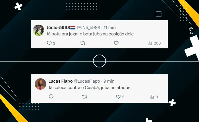 “Acho que são jogadores distintos. O Juba é mais construtor. O Iago tem mais semelhanças com o Arias, de atacar o espaço. Acho ótimo. O Juba joga tranquilamente na de Jean Lucas“, iniciou Ceni.