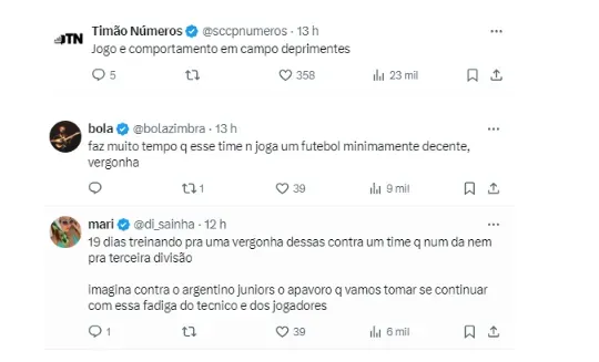 Reação dos torcedores do Corinthians ao tropeço na Sul-Americana: