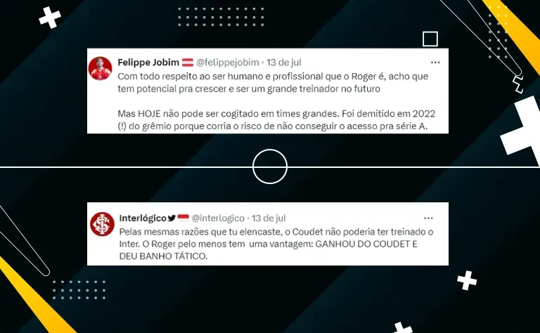 “Eu como Colorado pelo pouco tempo que conheço de futebol gaúcho acho que chegou a hora do Roger no Inter. Isso é só minha opinião como torcedor”, afirmou ele”, publicou.