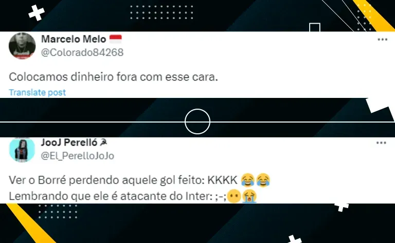 “Jogamos dinheiro fora com esse cara”. “Ele vem muito mal na Copa América, acredito que não foi um investimento muito legal do Alessandro Barcellos”. “Espero que ele não perca um gol desse por aqui, o cara ainda precisa justicar a aposta que fizemos nele”.