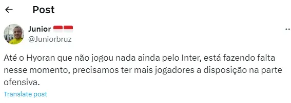 Todavia, mesmo com o estado passando por essa situação alarmante, nesta quarta-feira (15), outro tema ganhou os holofotes nas alamedas do Sport Club Internacional: trata-se de uma atualização envolvendo o meio-campista Hyoran.