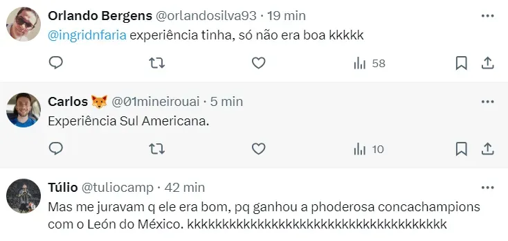 “Obrigado por tudo, profe. Pela lealdade, coragem e a tua entrega desde o primeiro dia”, escreveu Matheus Pereira. Já Dinneno ressaltou que apesar do curto período, o treinador conseguiu mostrar seu trabalho: “Pouco tempo, mas o suficiente para criar um vínculo baseado em valores e também nas suas capacidade para nós melhorarmos como futebolistas. Não tenho dúvidas que o futebol vai seguindo dando oportunidades para você alcançar suas metas profissionais que estão à altura de sua humildade e ambição”, pontuou.