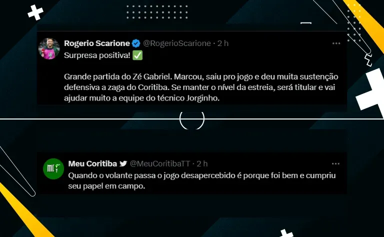Para o confronto contra o Brusque, Jorginho promoveu a estreia de Zé Gabriel no meio de campo da equipe paranaense. Após a partida, o comandante rasgou elogios para o volante e citou volantes históricos para exemplificar o estilo de jogo do jogador.