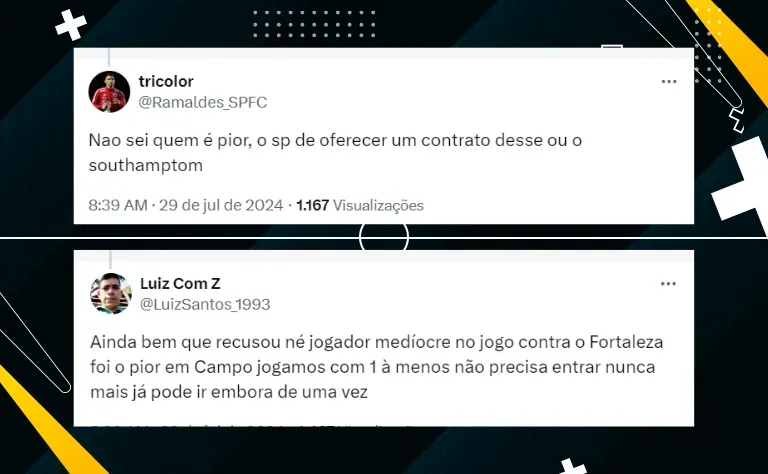 Em contrapartida, o tema do momento na torcida é Juan. É de conhecimento geral que o atacante assinou um pré-contrato com o Southampton, da Inglaterra, e vai se transferir em janeiro de 2025. Porém, mesmo assim, foi titular na última partida, onde teve uma atuação ruim e saiu criticado pela torcida.
