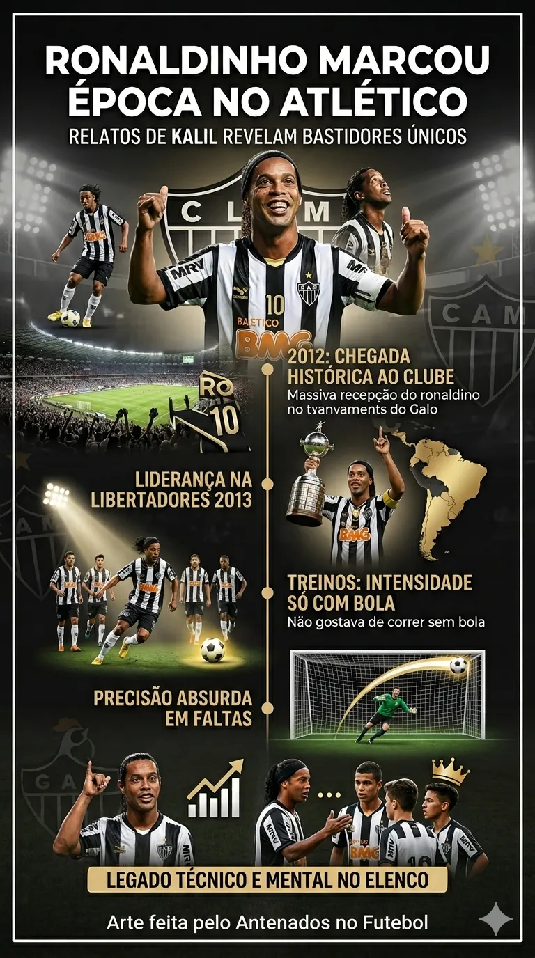 A trajetória de Ronaldinho Gaúcho com a camisa do Atlético Mineiro segue como uma das mais simbólicas da história recente do clube. Entre 2012 e 2014, o jogador não apenas conquistou títulos, como também deixou marcas profundas no ambiente interno da equipe.