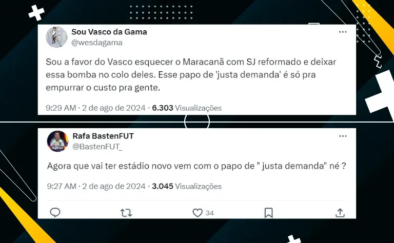 Em contrapartida, o tema do momento na torcida é Rodolfo Landim, presidente do rival Flamengo. O Rubro-Negro está prestes a iniciar a construção de um novo estádio, sendo assim, o mandatário flamenguista citou o Vasco em uma declaração referente ao Maracanã.