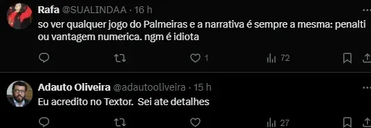 “É uma irresponsabilidade, esse senhor é um fanfarrão e eu acho que ele tem que ser punido de uma forma exemplar. Esse homem deve ser banido do futebol brasileiro. Ele fala tanto da inteligência artificial, que ele deveria dar menos valor para a inteligência artificial e mais para a emocional, que ele não tem nenhuma. Agora quem tem que tomar as providências são as autoridades, a parte do Palmeiras já foi feita”, concluiu Leila.