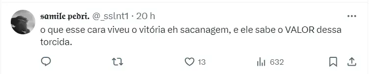 “Pude pensar sobre como nossa trajetória foi emocionante, intensa e em como, mesmo em meio às adversidades naturais ao processo de reestruturação, fui muito bem recebido e acolhido pelo povo baiano, pelos funcionários do clube, pelo grupo de jogadores, pela imprensa e pela torcida”, completou.