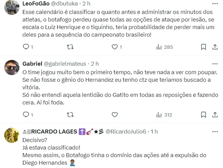 Apesar disso, o jornalista Lofrredo entrou para a lista de temas comentados na torcida. Isso porque, durante o SporTV News, o profissional criticou o fato de Artur Jorge, que teve problemas na Libertadores, por ter poupado o time.