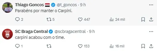 Comentários dos torcedores sobre o trabalho de Thiago Carpini: