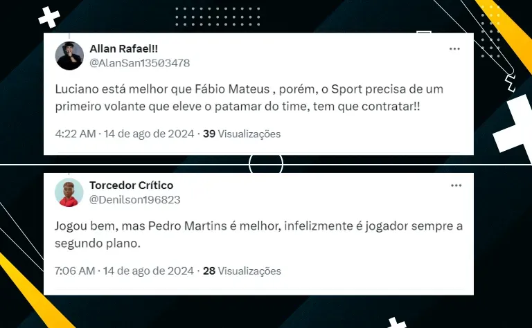 Na sequência, ele falou sobre o sentimento de ter sido titular no time nordestino. “Estrear como titular no Sport é gratificante, é maravilhoso. Venho trabalhando antes dessa oportunidade para estar bem preparado”, concluiu.