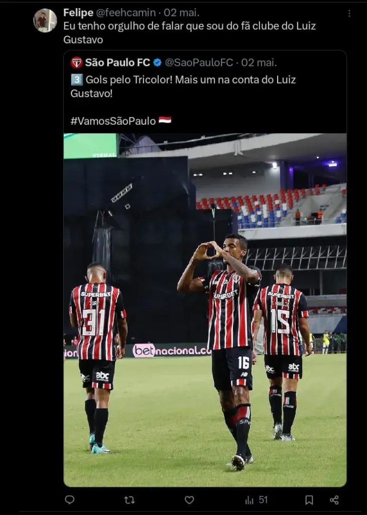 O volante Luiz Gustavo deve ter nova oportunidade no São Paulo. A expectativa é que ele ganhe mais chances devido às convocações para a Copa América, conforme noticiado pelo UOL Esporte.