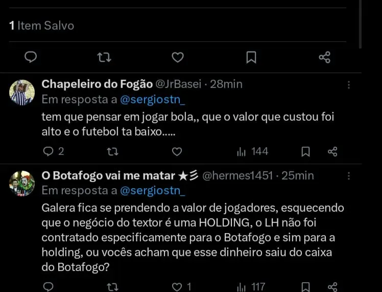 Isso é claro, se ele quiser. Apesar desse medo da torcida, em entrevista ao GE, o jogador deu a garantia de sua permanência: “Eu estou muito feliz aqui no Brasil. Pretendo ficar aqui até o final do ano. Ainda não estou pensando na Europa. Quero fazer minha parte aqui no Botafogo”, disse.