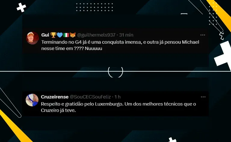 “Eu coloco o Cruzeiro hoje como um dos candidatos ao título. O pessoal tá falando muito, Palmeiras, Flamengo, Botafogo. E eu vou incluir agora o Cruzeiro como um dos candidatos”, cravou.