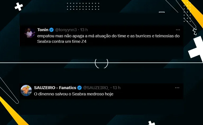 Cabe ressaltar que o resultado poderia ter sido pior para a equipe de Seabra, já que o Vitória abriu dois gols de diferença no marcador. No entanto, com Dinenno, que balançou as redes duas vezes, arrancou o empate.