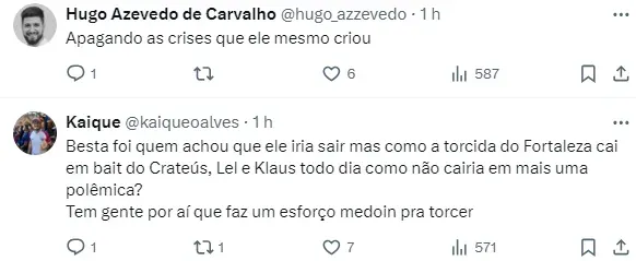 “Entendo que ainda há muito para fazer pelo Tricolor e por isso comunico minha permanência no cargo de CEO do Fortaleza EC SAF”, publicou.