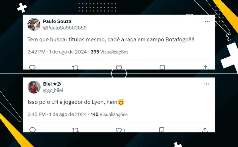 “Ele mandou mensagem, a gente trocou mensagens. Disse que o Botafogo é uma família. Pelo que eu já vi, todo mundo é unido no CT, todo mundo está focado em só um objetivo, que é levar o Botafogo aos títulos, que o clube tanto busca”, disse.