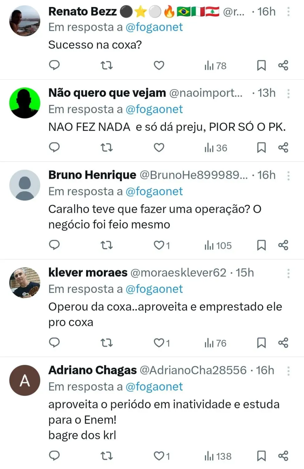 Além da dupla, Matheus Nascimento passou por cirurgia nesta terça-feira (30), para reparar a lesão muscular na coxa direita sofrida no dia 18 de abril, durante a partida contra o Juventude, pela terceira rodada do Campeonato Brasileiro.