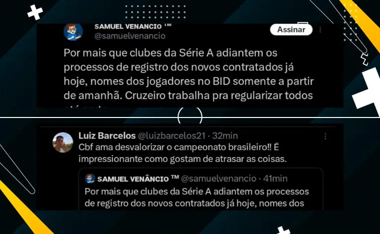Porém, por mais que trabalhe fortemente para ter os jogadores disponíveis para Fernando Seabra, o prazo oficial da CBF para os nomes serem registrados no BID é a partir de amanhã.