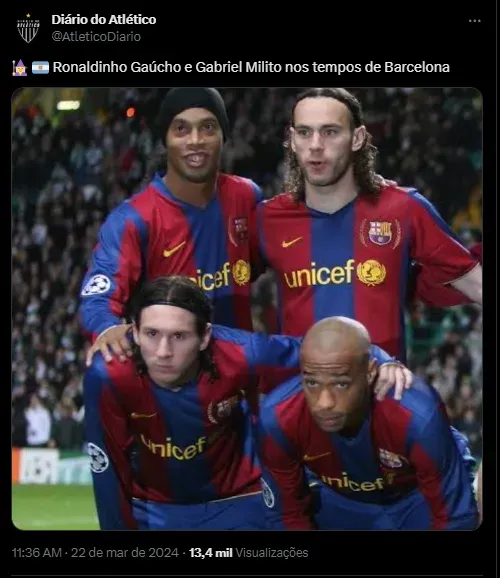 Uma das revelações mais interessantes foi a amizade de Milito com Ronaldinho Gaúcho, um ídolo do Galo. Ambos são contemporâneos e têm uma longa história juntos no futebol, que começou quando tinham apenas 15 anos.