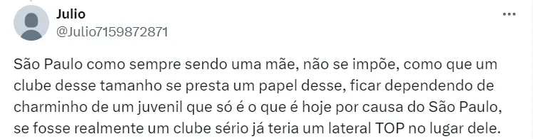 Em entrevista à TNT Sports, Muricy Ramalho comentou sobre a situação do jogador. Ele afirmou que a lesão sofrida pelo jovem não é grave, mas falou da situação contratual do atleta, cujo vínculo com o Soberano é válido somente até dezembro.