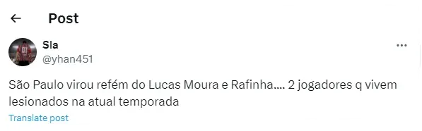 “O Lucas tem quantos gols no SPFC? Quatro gols. Ele falar que a culpa é da imprensa foi de uma postura bem questionável. A verdadeira culpa é dos jogadores, eles precisam assumir esse B.O junto com o comandante”, frisou.