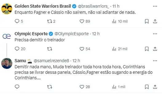 “Na verdade, o Corinthians é um time inofensivo, naquilo que se pensa que é jogar futebol. Você pega um time sem sete titulares e o que você tem que fazer: pressionar. E não é isso que acontece”, finalizou.