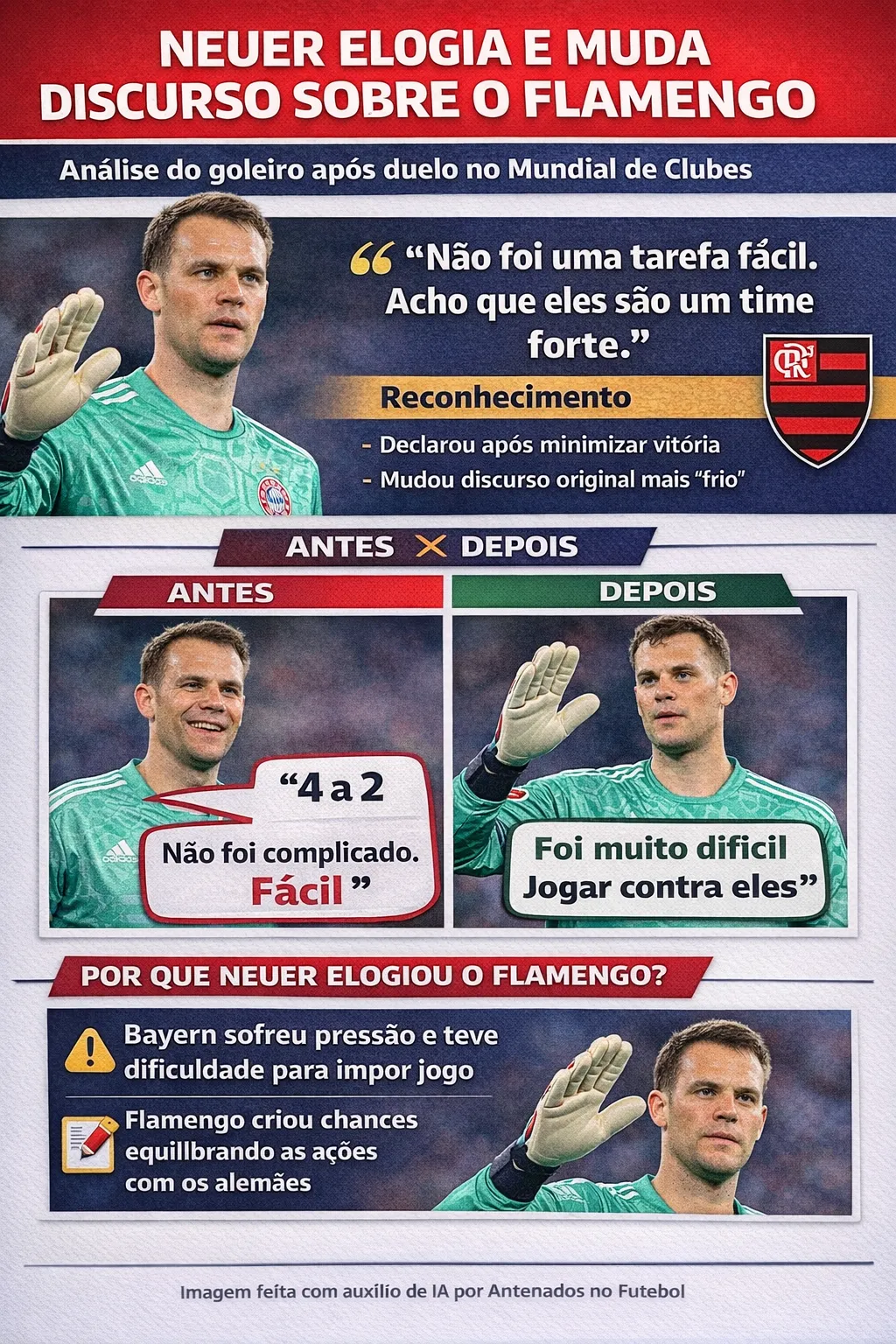 A mudança no discurso de Neuer também chama atenção e pode ser interpretada como um reconhecimento mais frio e analítico após o apito final. Se antes o goleiro minimizou o cenário ainda no calor do jogo, agora adota um tom mais respeitoso, refletindo não só a exigência do confronto, mas também o nível de competitividade apresentado pelos Rubro-Negros.