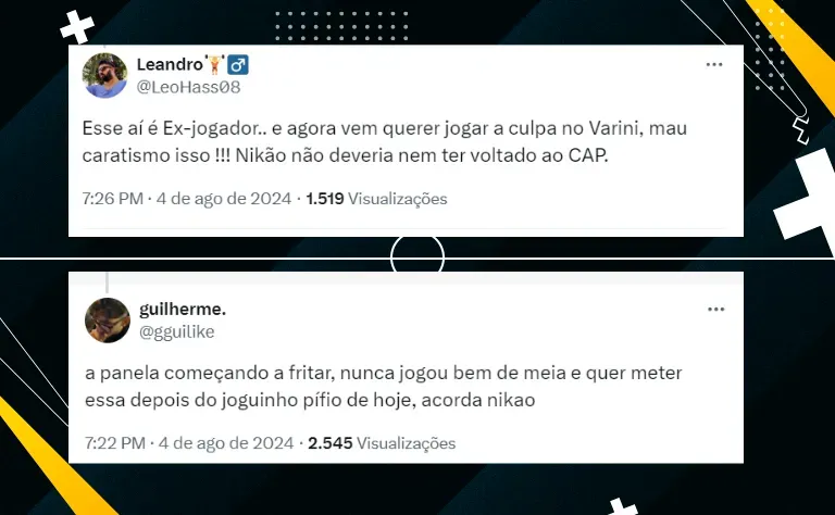 Outro tema que também repercutiu foi Nikão. O meia-atacante errou um passe que acabou originando em gol do Grêmio na sequência. Dessa forma, em entrevista após o jogo, ele fez um ‘alerta’ sobre seu posicionamento, afirmando que não é ponta.