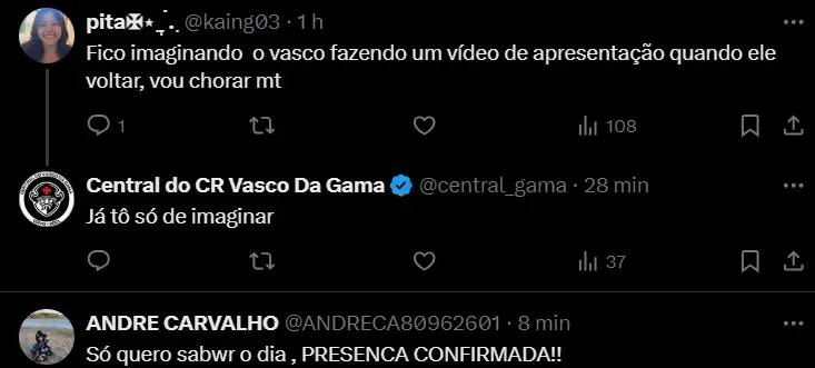 “O passado e a história falam por si. O Coutinho é um atleta muito querido pela torcida. Ao longo da carreira, teve uma carreira brilhante. É fantástico e, se por ventura, ainda não falei com a comissão, mas o que posso dizer é que ele é brilhante. O currículo dele fala por si. É um atleta que, se vier, será muito bem-vindo, pela torcida, pela comissão técnica e pela administração”, disse.