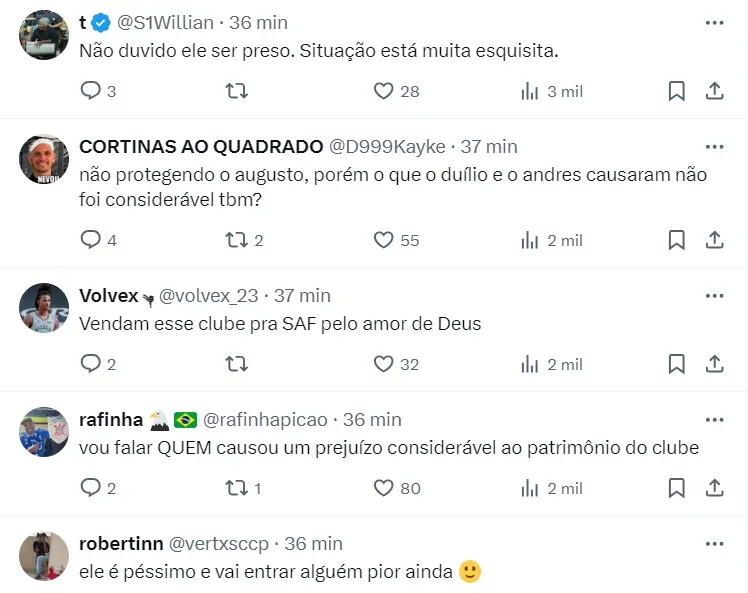 De acordo com informações apuradas pelo jornalista Bruno Andrade, do UOL Esporte, devido a todos os recentes ocorridos, opositores do Corinthians já trabalham pelo pedido de impeachment do presidente Augusto Melo.