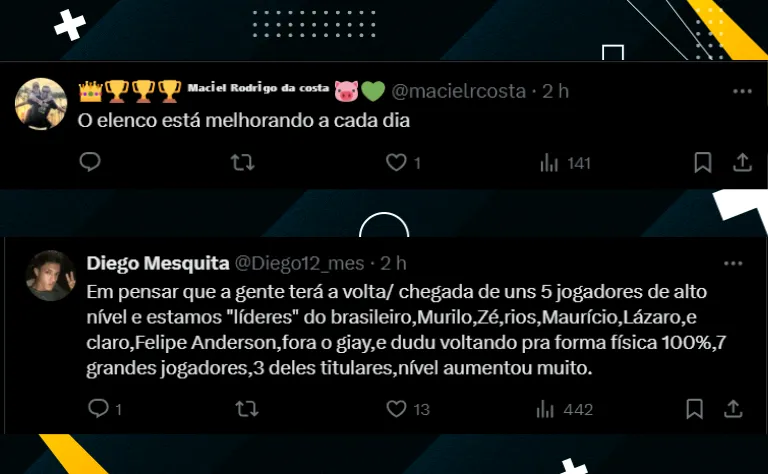 Entretanto, o torcedor Alviverde está de olho na estreia das novas contratações. Nesse sentido, Felipe Anderson, Maurício e Giay já devem estar à disposição de Abel Ferreira para a partida contra o Botafogo. Todavia, cabe ao português relacioná-los ou não. Felipe já treina com o elenco desde o início de julho, enquanto os outros dois foram apresentados a pouco tempo.