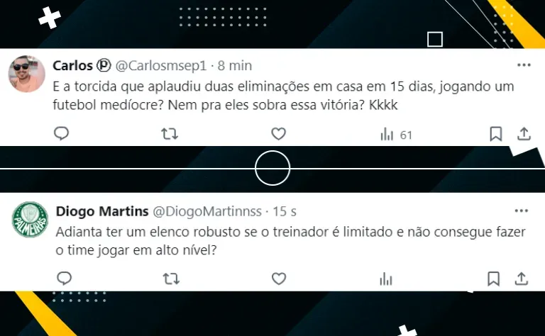 “O Palmeiras nunca teve tanta lesão desde que estou aqui. O Estêvão que machucou, voltou e machucou, Murilo também, Mayke… Pedimos muito para adiar o jogo de hoje e falaram que o Palmeiras seria muito beneficiado, sempre é assim. Eu sempre peço para ter três dias de descanso, gramado bom. Minha presidente luta por isso, mas ninguém quer lutar pelo que está indo”, concluiu.