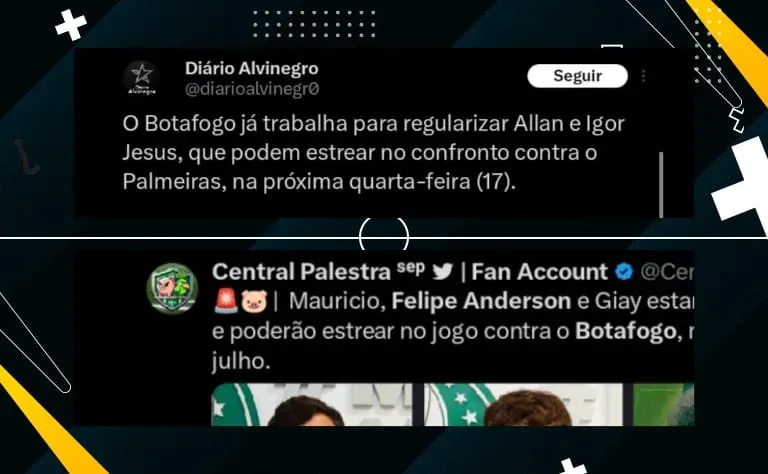 O Alvinegro Carioca também poderá ter seus reforços para a partida diante do time paulista: Igor e Allan Jesus deverão fazer suas respectivas estreias diante do Palmeiras.