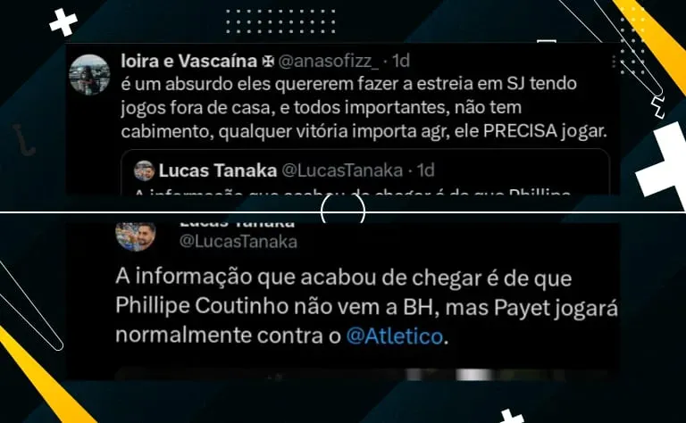 Em relação a Philippe Coutinho, o interino já havia dito que ele teria um tempo maior para se recuperar, ou seja, as chances são quase nulas dele viajar para BH e jogar.