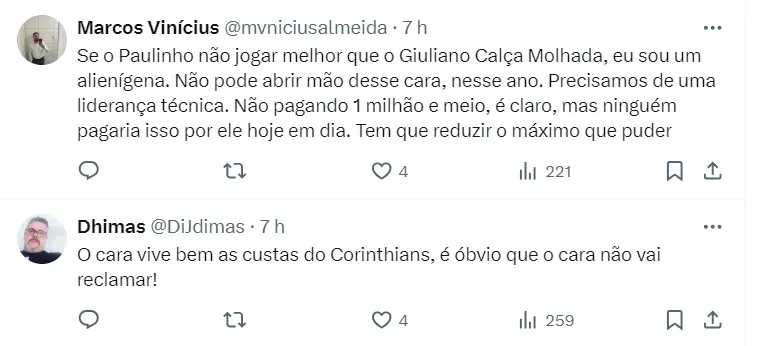 Além de abordar o presente, o volante também projetou seu futuro no Timão. Ele revelou ter aceitado uma redução salarial no início do ano e expressou seu desejo de renovar o contrato, que termina em 30 de junho. Já foram iniciadas conversas com a diretoria e seu estafe sobre uma possível extensão do vínculo até o final da temporada.